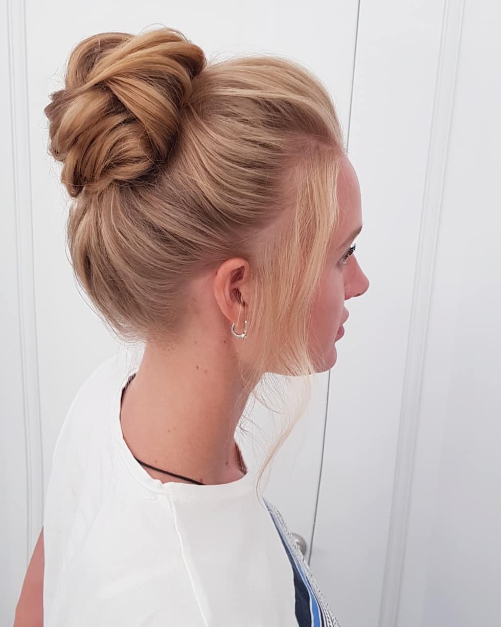 - в более консервативной среде — пучок французского твиста или французская коса, в зависимости от длины ваших волос.