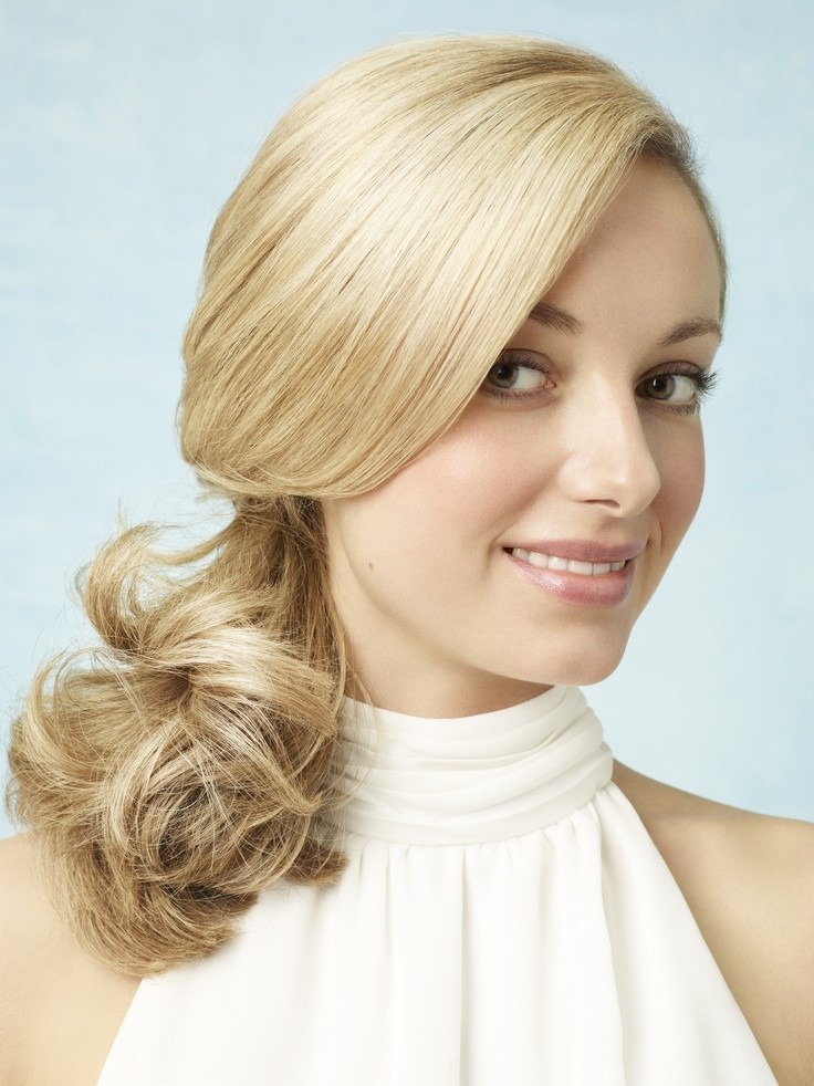 - В менее консервативной можно использовать шиньон или обычный хвост с красиво завитыми кончиками волос, это даст вам эффект достойной женственной прически, не требующей особой подготовки.