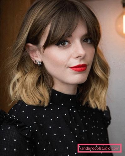 Вьющиеся волосы подходят женщинам со средней длиной волос и маленьким аккуратным лицом. Идеальная стрижка — челка и локоны, обрамляющие лицо.